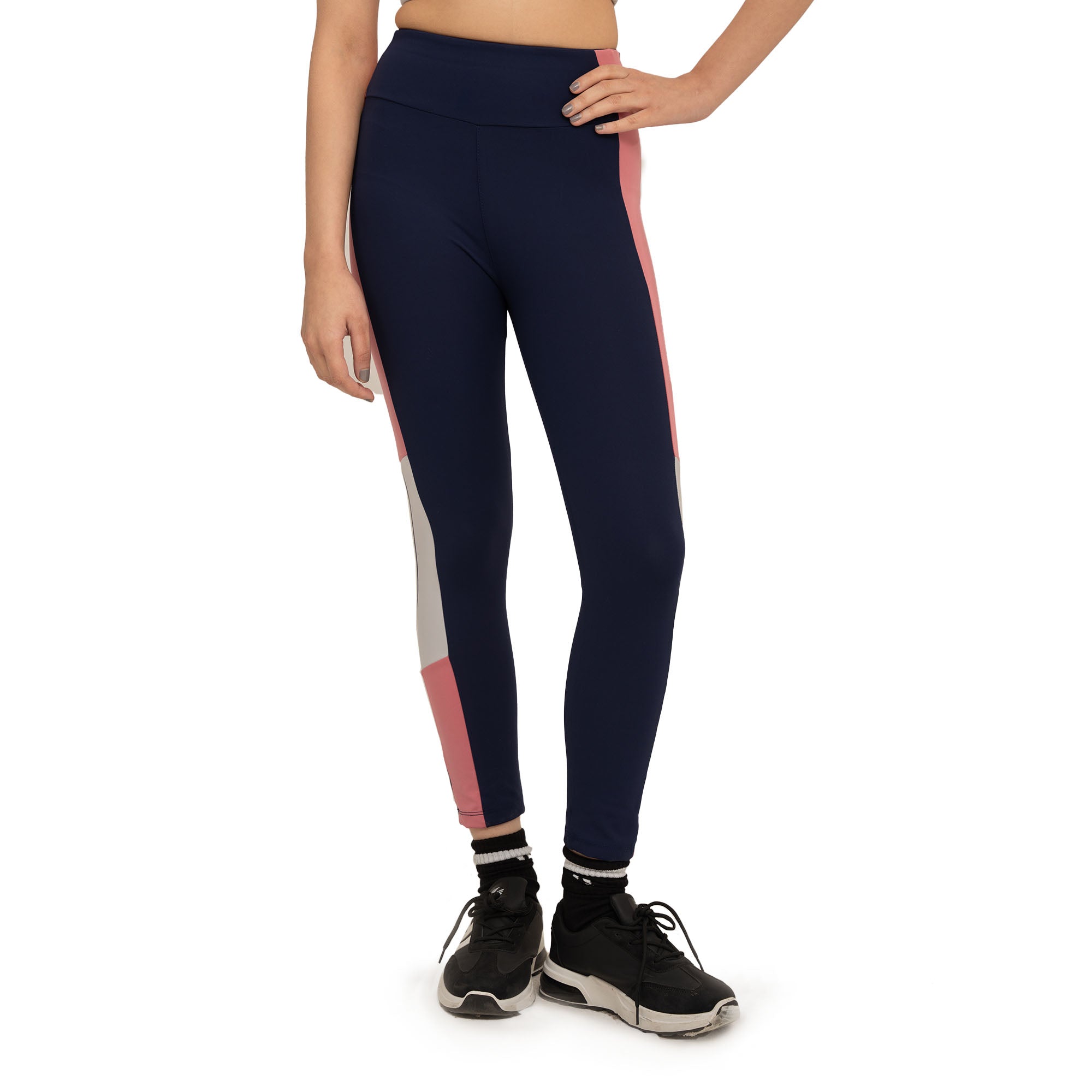 The Femme Fit Leggings are designed to move with you while keeping you comfortably supported. Made from soft, stretchable Lycra fabric, they deliver a smooth, second-skin feel with just the right amount of hold. The high-rise waistband offers secure coverage, while modern color-block detailing adds a stylish, athletic touch. Whether you’re powering through workouts or stepping out for the day, these leggings bring comfort, flexibility and effortless confidence to every move.